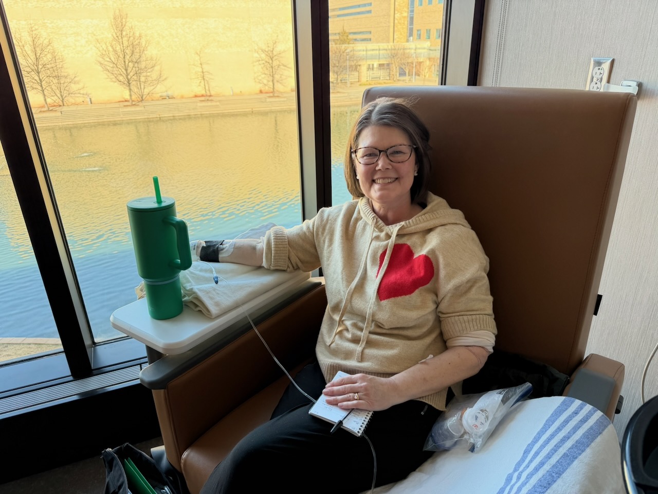 So what is the plan going forward? On Monday, Kimberly began the fifth cycle of chemo with a slightly modified medication plan. She will also continue to take the daily “targeted treatment” for her particular cancer’s mutation. This new chemo plan will carry on with no definite end: as long as it is helpful to keep the cancer from growing, she will continue to receive the treatment … so we are settling in to a new rhythm.